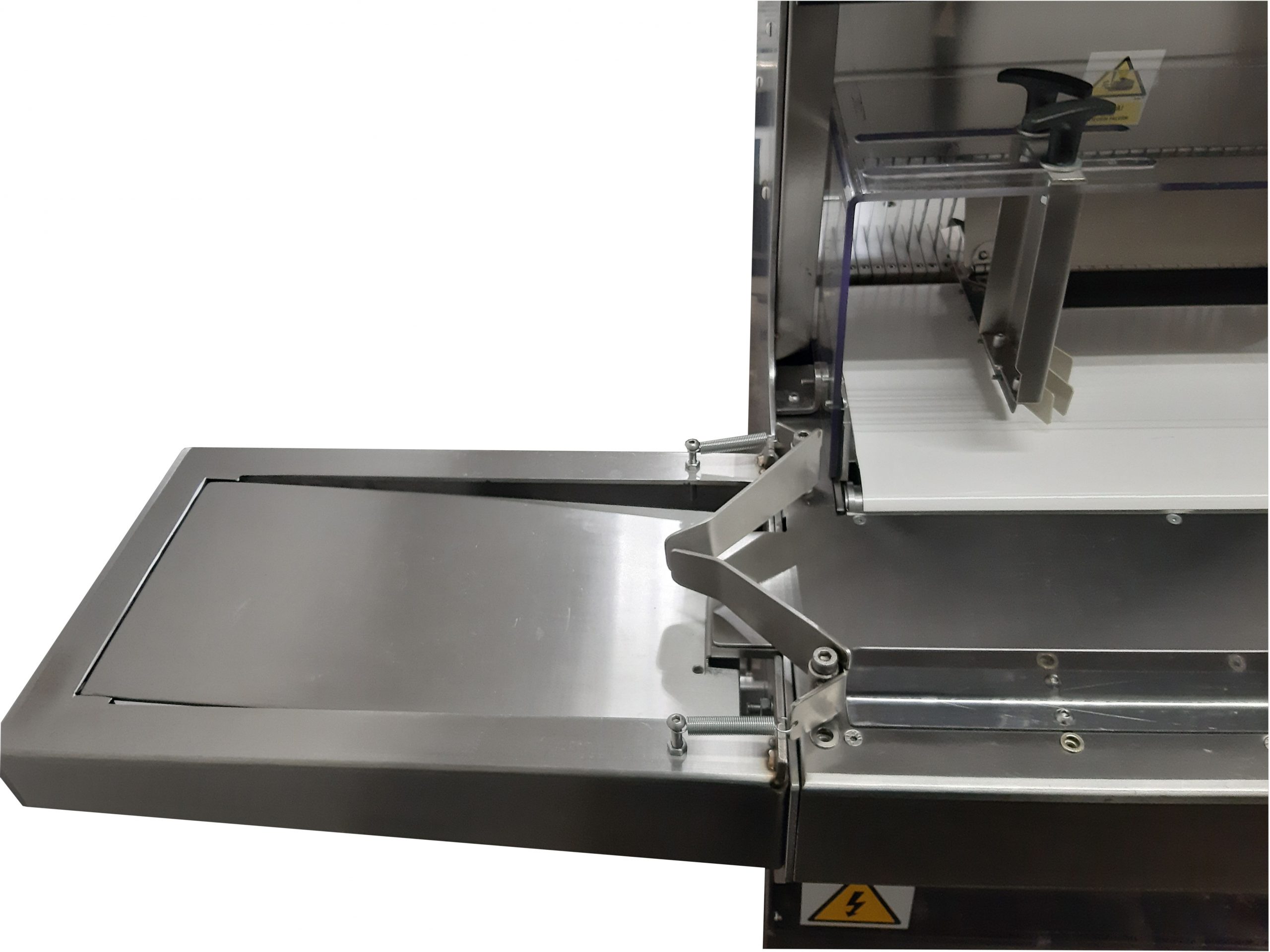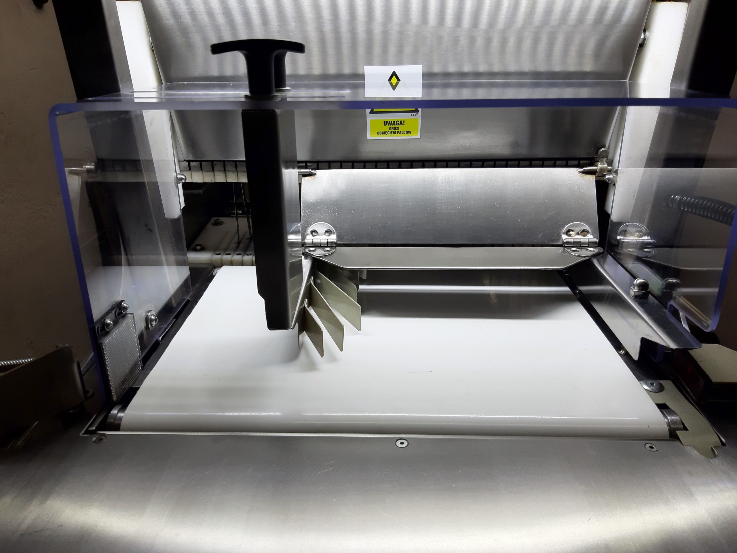 Krajalnica jest w pełni bezpieczna dla operatora. Dzięki zastosowanym osłoną rąk zarówno w części podajnika jak i odbioru chleba, operator mimo monotonnej pracy nie jest narażony na przypadkowy kontakt z ostrzami.